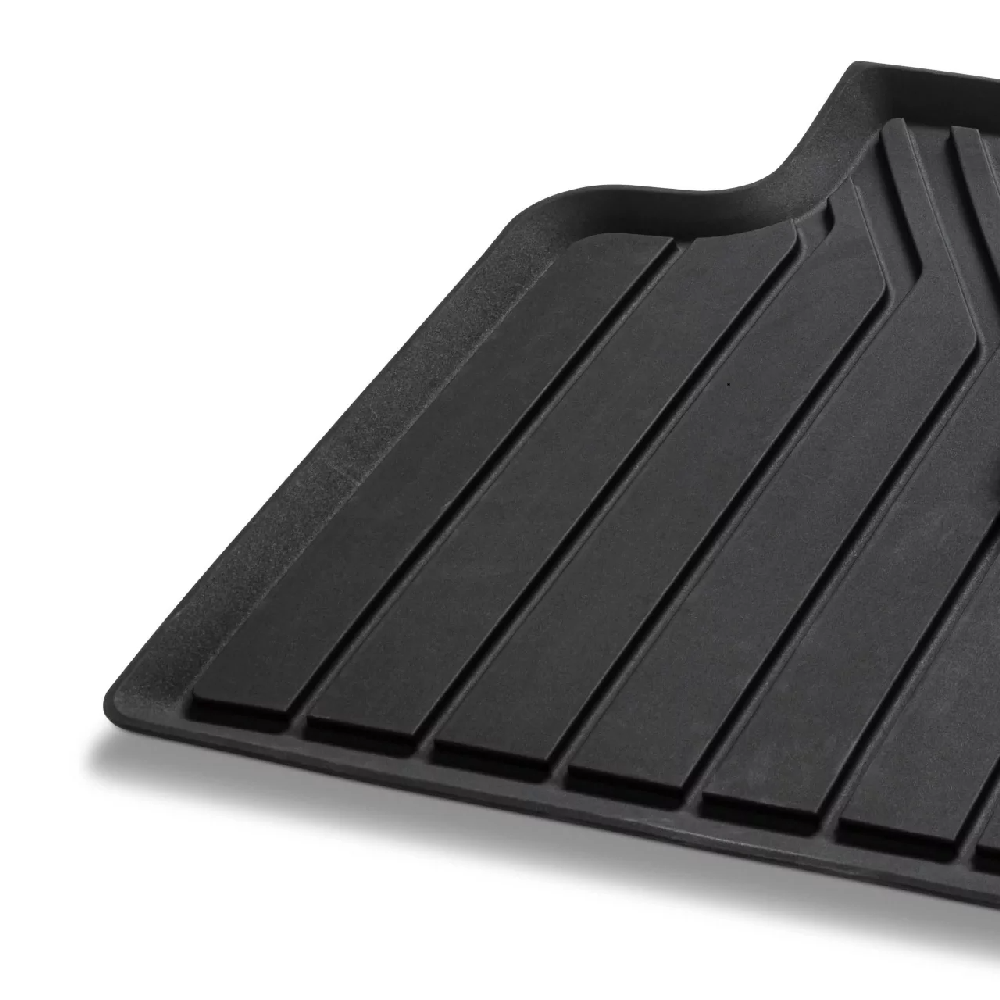 Las alfombrillas para todo tipo de clima se adaptan a la perfección a las medidas del suelo del Audi Q5. Las alfombrillas para todo tipo de clima están hechas de plástico de alta calidad, con material reciclado, y por lo tanto, pueden reciclarse mediante su correcta eliminación. Los resaltes del dorso minimizan el deslizamiento. Las alfombrillas para todo tipo de clima protegen el habitáculo de la humedad y la suciedad gruesa, son resistentes y fáciles de limpiar.Color: NegroVolumen de suministro:
