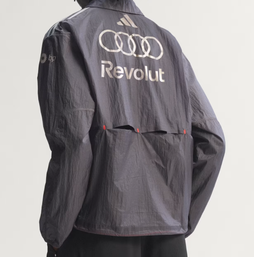 - Audi anillos y logotipo de Revolut grandes en la espalda