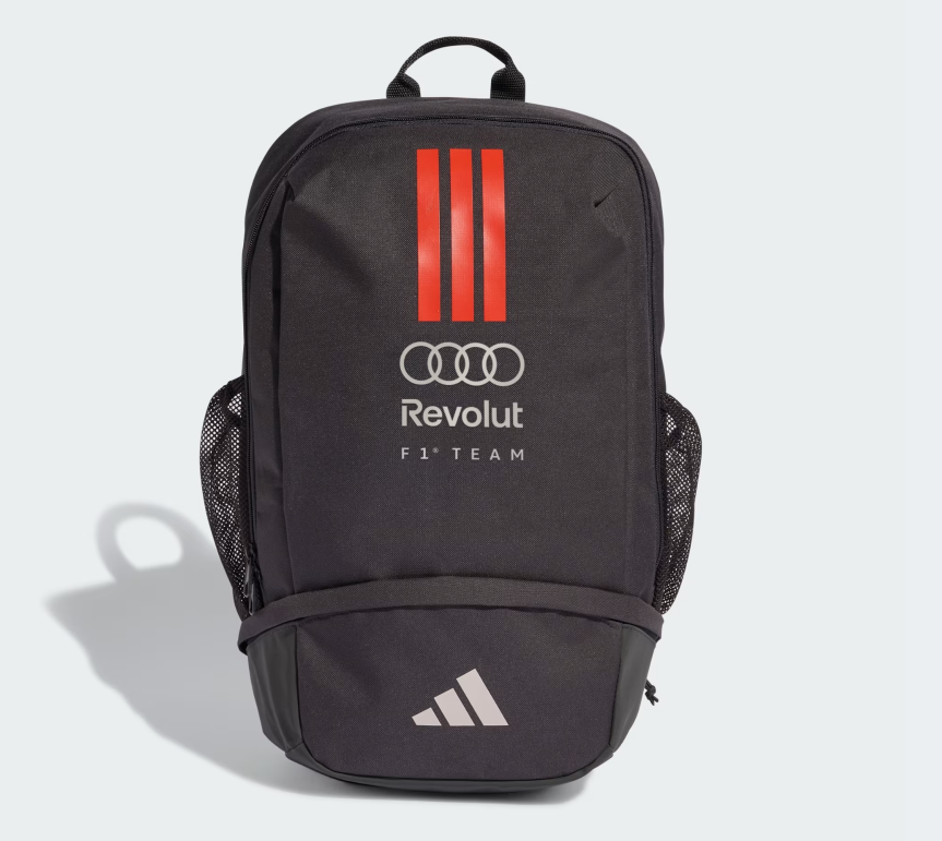 Detalles:- Mochila versátil para el día a día- Compartimento principal con espacio para el portátil- Compartimento con cremallera en la parte delantera- Bolsillos de malla en el exterior, por ejemplo, para botellas- Correas acolchadas y ajustables para los hombros- Espalda acolchada- Asa de transporte- Base reforzadaMarca:- Audi F1® logotipo del equipo - Logotipo de adidas Perfomance- Estampado de 3 rayasDimensiones/volumen:- 30 x 19 x 50 cm (largo x ancho x alto)/aprox. 28,5 lMaterial:- Poliéster (reciclado)Color:- Negro-gris